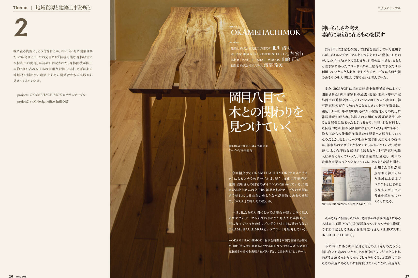 兵庫県建築士事務所協会 広報誌「くすのき」OKAMEHACHIMOKコナラのテーブル掲載