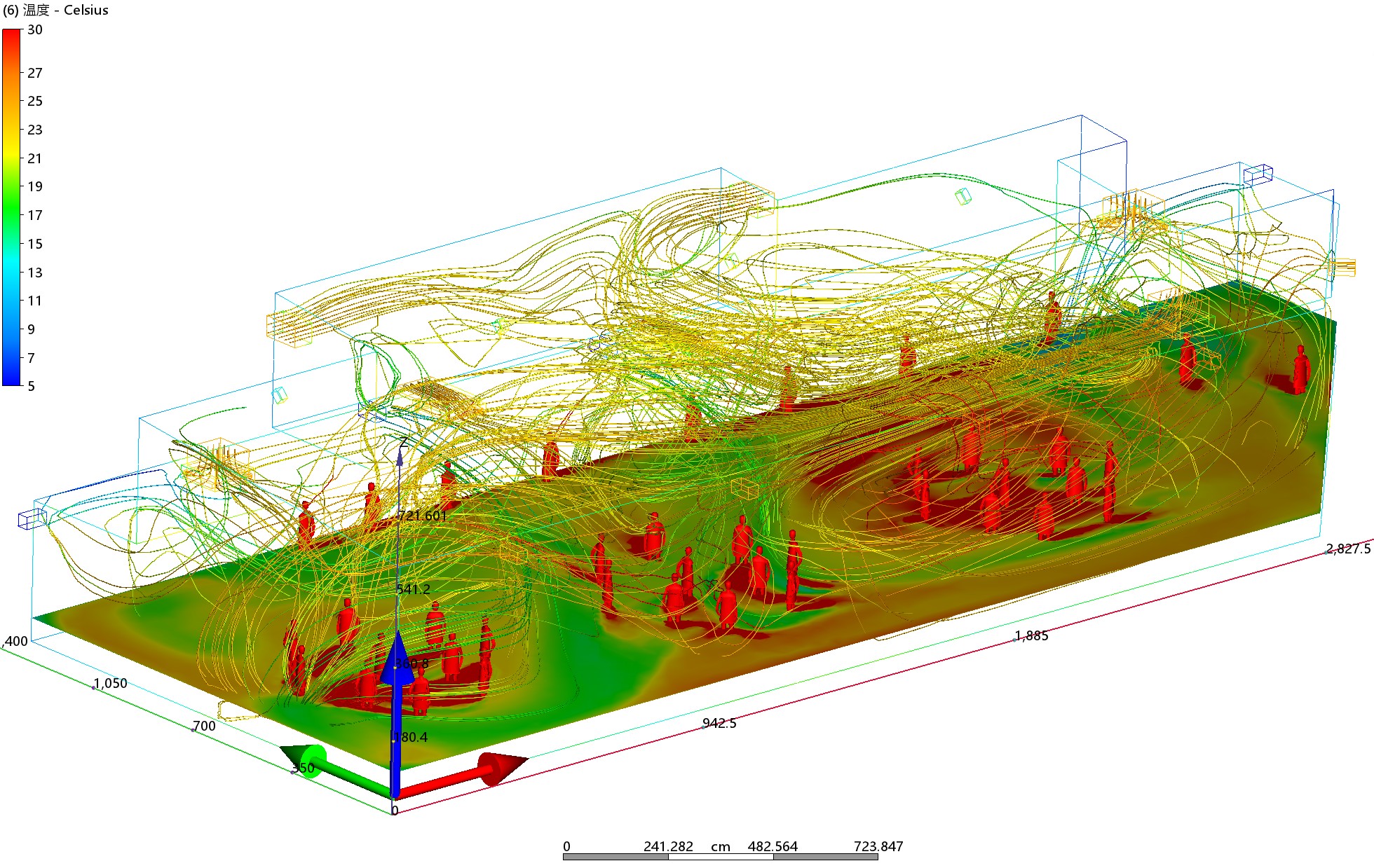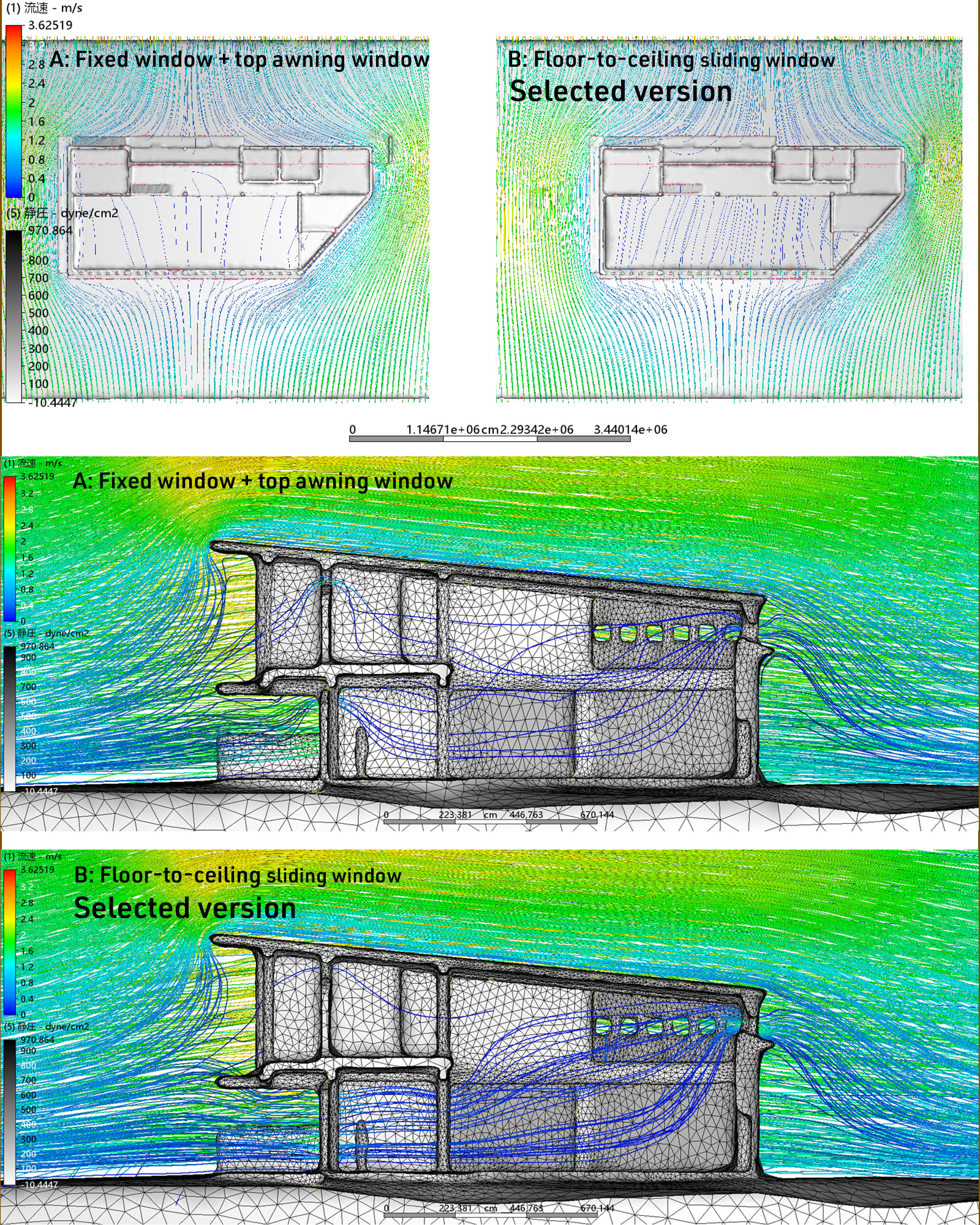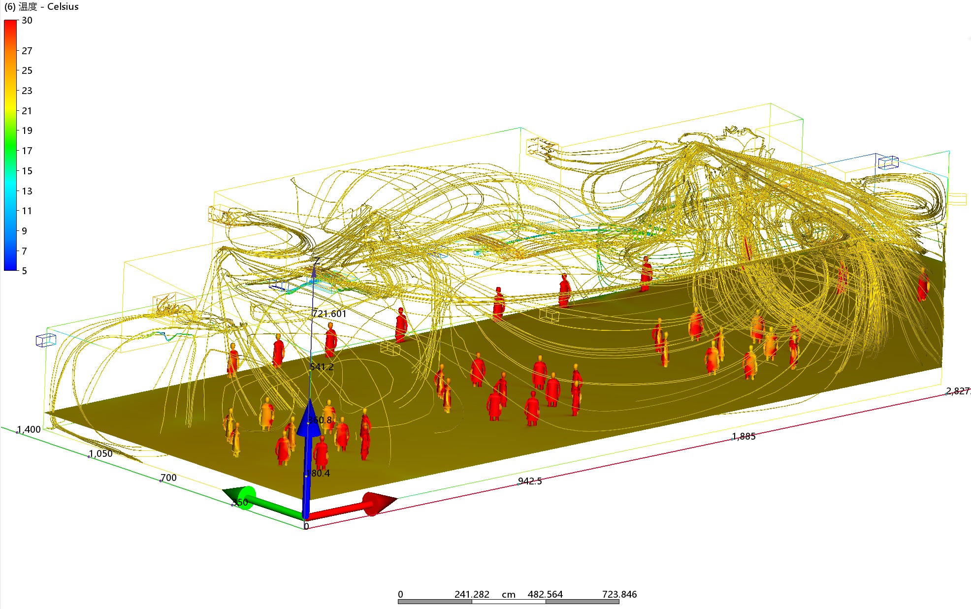 具体的には、機械設備に過度に依存せず、CFDシミュレーションにより自然通風を検証し、大開口のスライディング窓やハイサイド窓を組み合わせ、季節の風を取り込む開口計画とした。さらに、グラスウール天井などの吸音材を適切に配置し、コミュニケーションの取りやすい音環境を整備している。また、空調とサーキュレーターの配置および断熱計画により、安定した温熱環境を確保した。